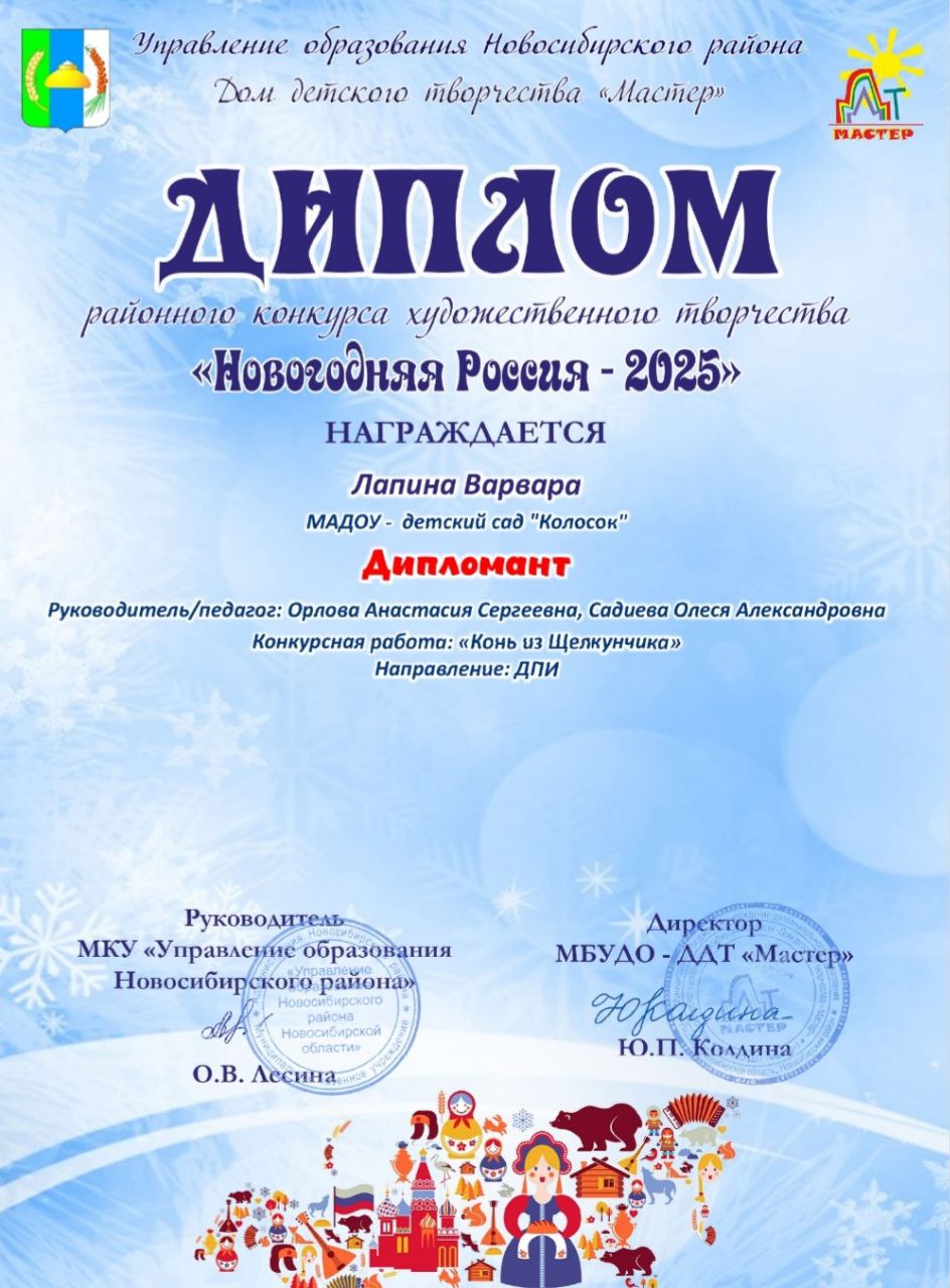 Диплом победителя, Диплом победителя 1 степени