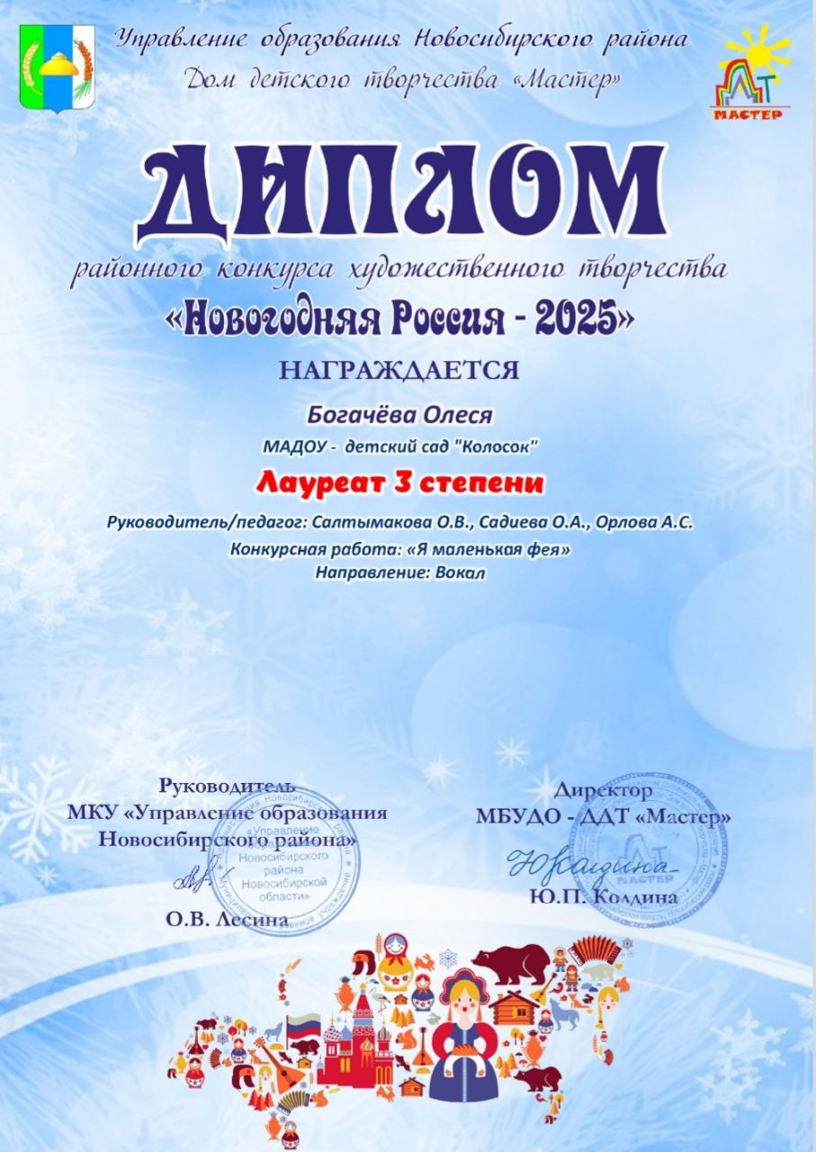 Лауреат 3 степени Богачева Олеся