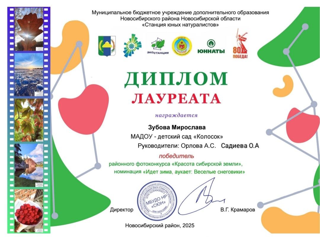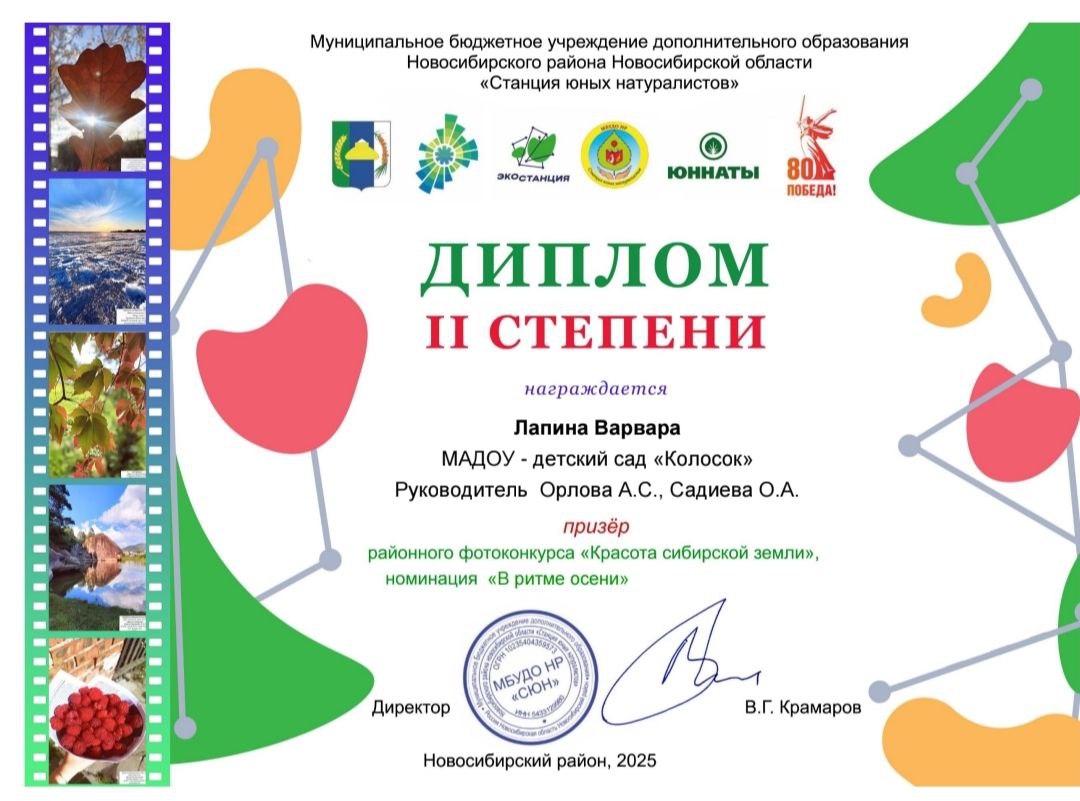 Диплом Лапина Варвара "Семья в объективе" призер 2 степени
