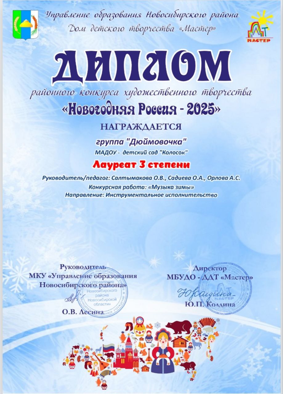 Сертификат Группа "Дюймовочка"
