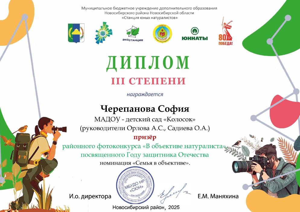 Диплом 3 степени Черепановой Софии